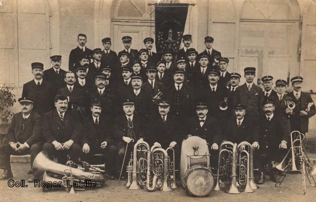 Derrière la bannière de la fanfare on en distingue une autre de forme triangulaire. Sur celle ci on peut lire : " Apiculteurs Société de Secours". Rien ne prouve que cette société était localisée à Romanèche-Thorins! mais cela montre que les apiculteurs étaient déjà une profession organisée.
