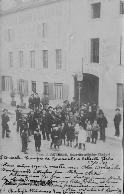 Cette carte photo prise à Belleville sur Saône nous démontre l'existence de cette amicale de sonneurs de trompes de chasse. Les sonneurs sont d'ailleurs nombreux, pour un instrument aussi peu répandu.