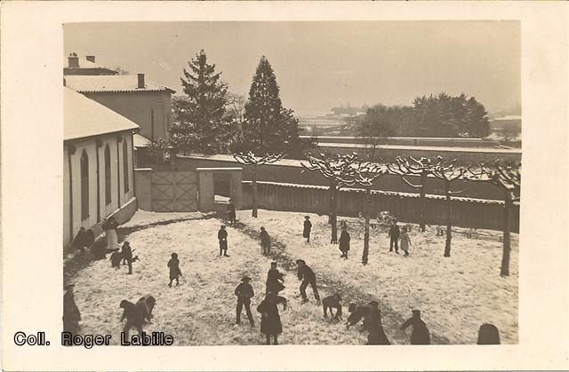 Mais à Romanèche-Thorins il tombe aussi de la neige pour la plus grande joie des enfants de l'école
