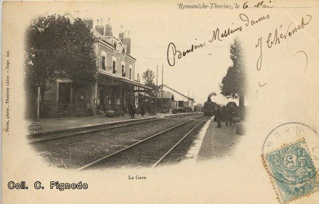 Jusq'en 1872, la commune s'appelait Romanèche. A cette époque le vin des Thorins était très connu alors que les vins de Romanèche........... C'est par décret, signé à Versailles, que le 29 juillet 1872 le gouvernement d'Alphonse Thiers autorisa le changement de nom en accolant à Romanèche le nom du hameau le plus connu parmi les quinze hameaux de la commune.