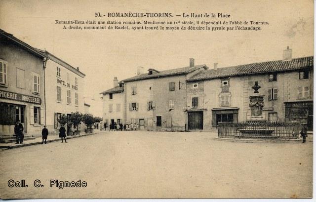 A l'opposé de l'église , dans un coin de la place a été érigé le buste de Benoit Raclet. Nous avons déjà présenté certains documents se rapportant a ce monument. Nous compléterons ici avec quelques autres clichés en notre possession.