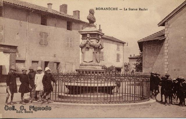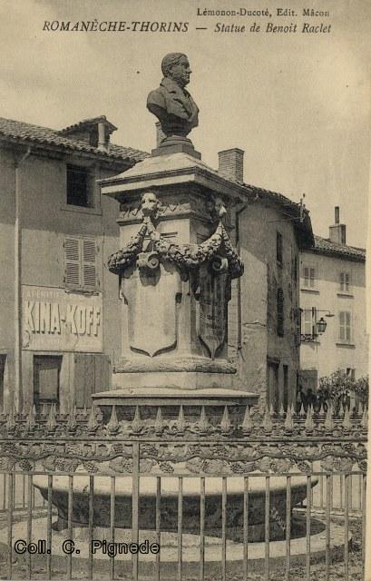Quelques unes des nombreuses cartes postales du monument à Benoit Raclet.