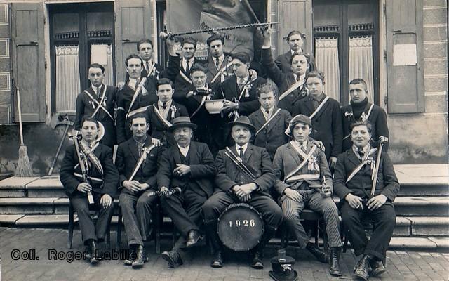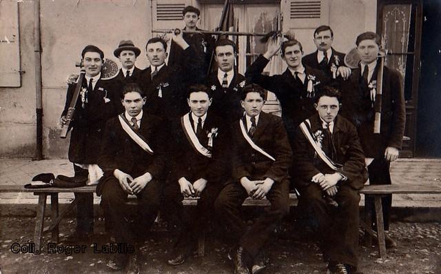 La classe 1933, on reconnait au dernier rang le second à partir de la droite, avec un haut de forme Jean Rostaing, boucher à la Maison Blanche, à sa droite Bouveret; et au second rang à droite avec un béret Alexandre Deguin, quincailler.