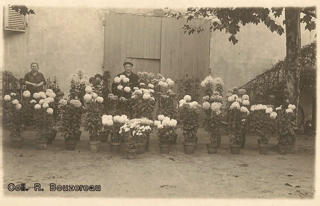 Mr et Mme Paquier, sauf erreur de ma part grands parents de Robert Bouzereau, fiers de leurs fleurs, nous présentent leur plus beaux chrysenthèmes