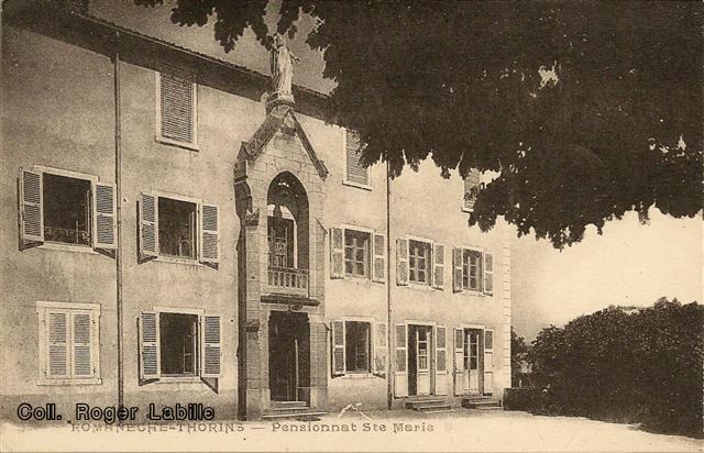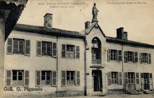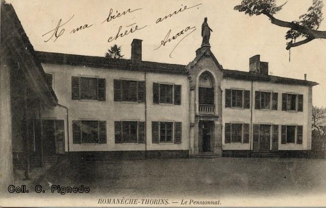 Selon une source bien informée, il a existé une autre école à Romanèche-Thorins. C'était un pensionnat de garçons. Nous ne possédons pas de carte postale de cet établissement pour la bonne raison qu'il a disparu en 1880. A cette époque la carte postale n'avait pas encore droit de cité à Romanèche. Certains seront surpris d'apprendre que cette école était située à l'angle de la rue du commerce et de la route du Moulin à Vent.
