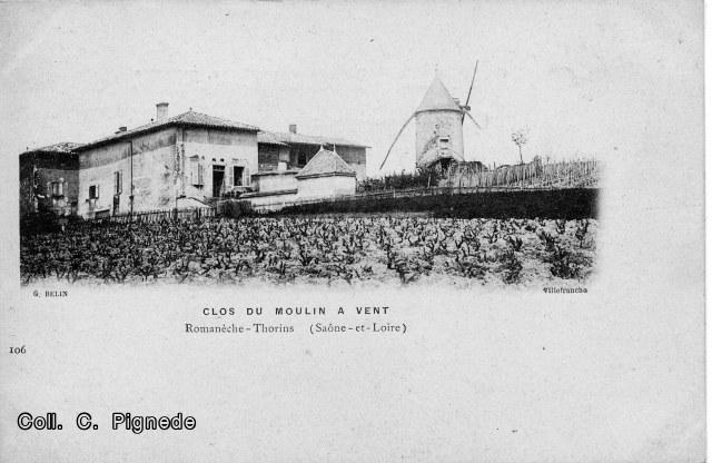 "Ce village n'est ni étendu, ni très peuplé. Pourtant sa renommée est grande dans le Beaujolais, et partout où l'on sait << humer le piot >>. Son nom de Romanèche-Thorins, d'origine latine, et même ligure, d'après les érudits, sonne comme une fanfare aux coeurs de tous ceux qui ont le palais sensible et voluptueux , car c'est le vénéré Moulin à Vent, qui domine et qui protège l'armée innombrable de ses ceps".