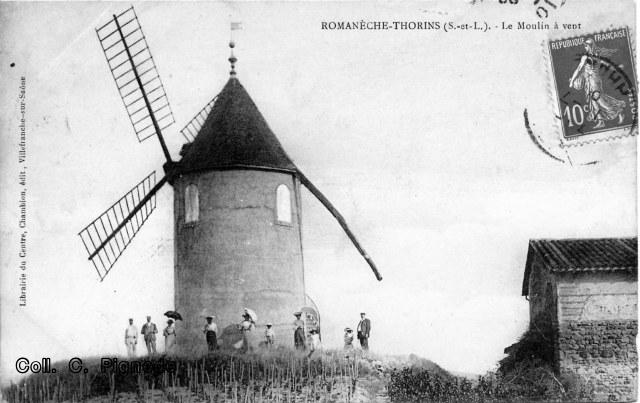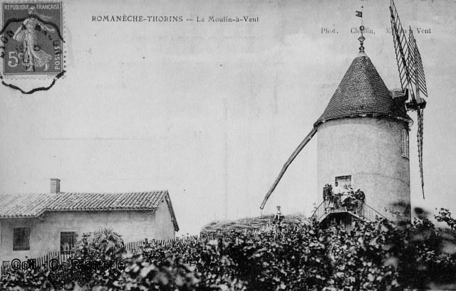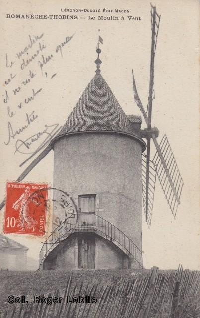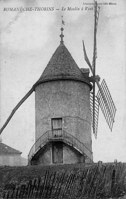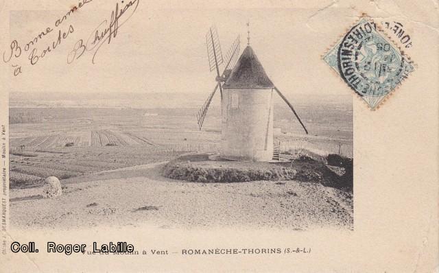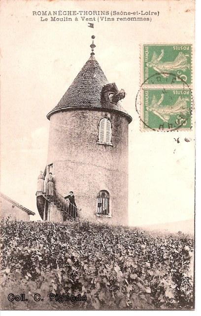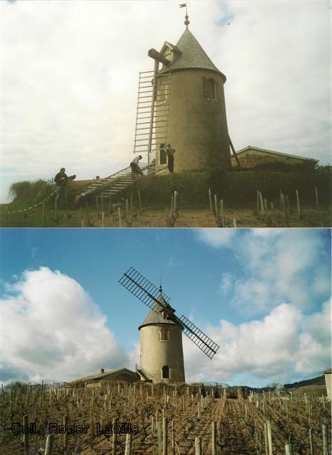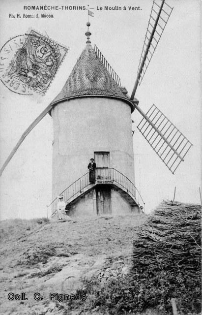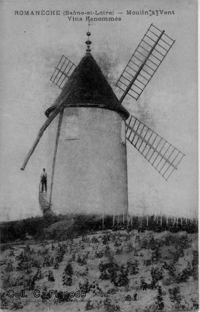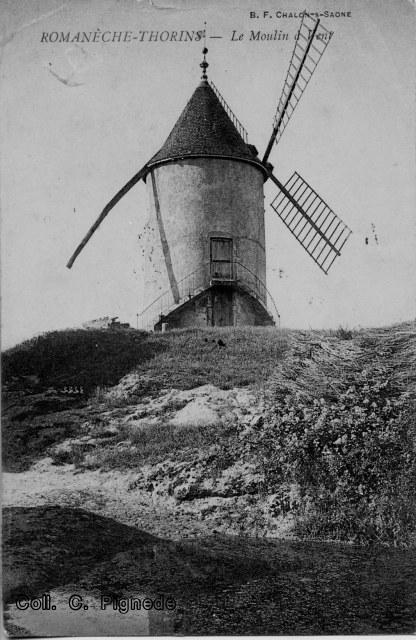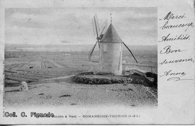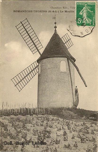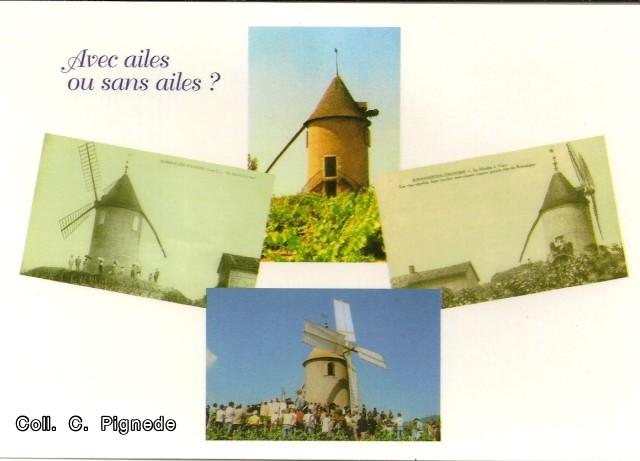 Pourtant la présence d'ailes complètes sur celle de gauche, la daterait d'après 1904. Mais il est possible que cette carte utilise un cliché plus ancien.Après tout la photographie a été inventé en Saône et Loire.Il faudrait savoir a quelle période à la fin du XIXème siècle le moulin avait des ailes complètes.