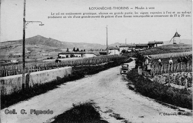 Planté au beau milieu des vignes, il est bâti sur le point culminant du village de Romanèche Thorins sur le coteau venté du Pionsé, sur la route de Chénas.