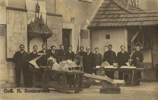 Cette carte photo, que l'on retrouve sur le site du musée du compagnonage, montre Pierre François Guillon au milieu de ses élèves.