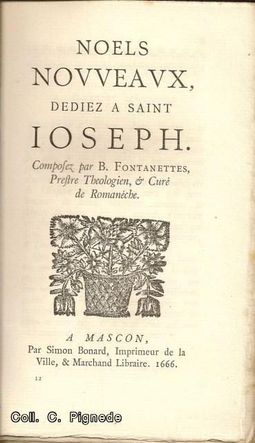 Ces NOËLS de Benoit Fontanettes et sa biographie, ont été réédités en 1914 par l'imprimerie Protat frères à Mâcon. C'est un livre très rare.