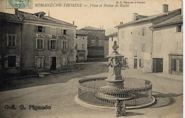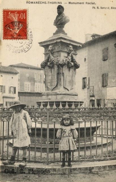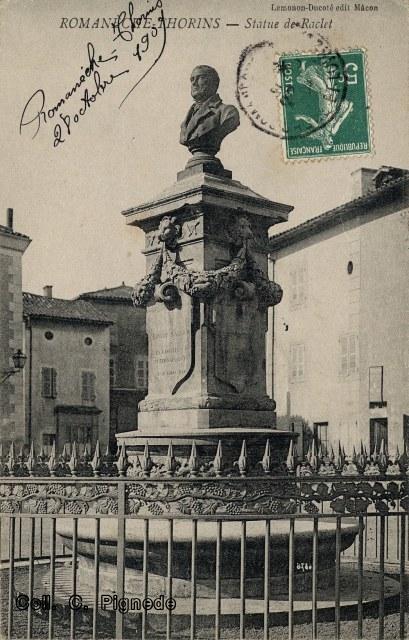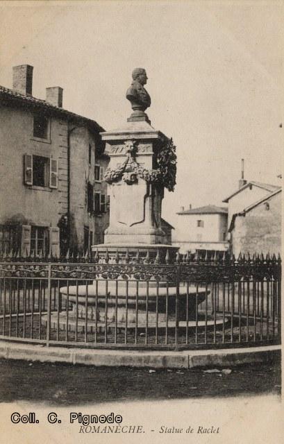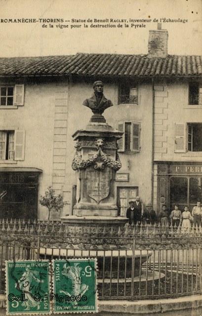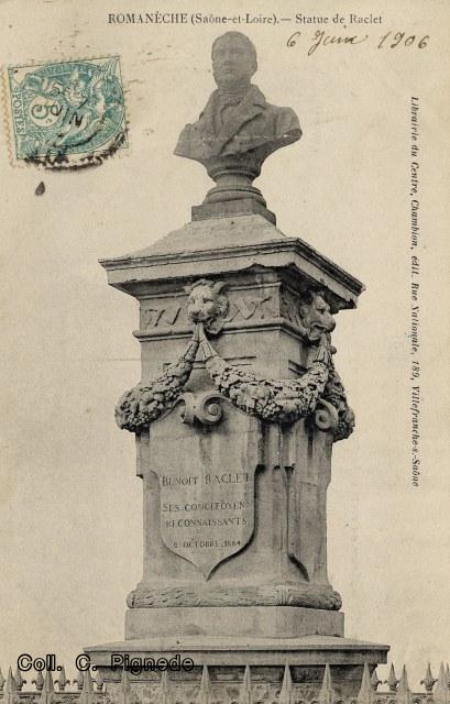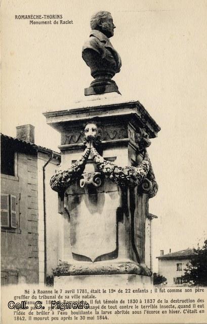 Quelques unes des nombreuses cartes postales du monument à Benoit Raclet.