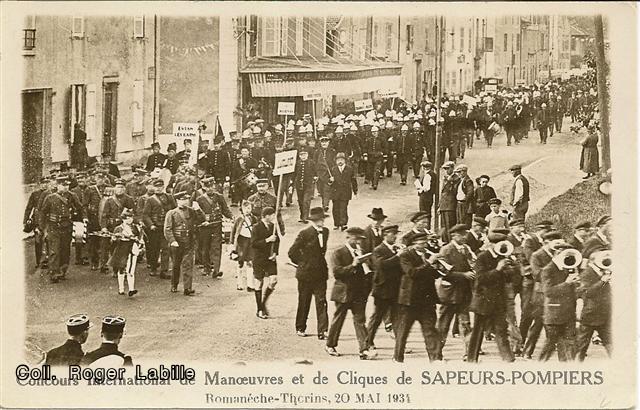 Mais qui se souviens que Romanèche-Thorins a accueilli un festival des cliques de Sapeurs Pompiers. C'était le 20 mai 1934. Ces clichés ont été pris au carrefour de la Maison Blanche. C'était bien avant la construction de la station service.